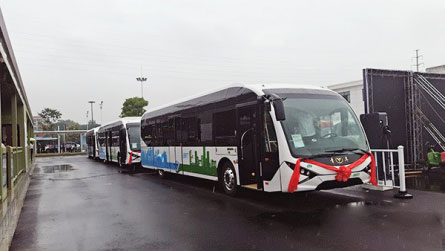 浙江省金華市的BRT3、4號線電動大巴正在跨城鄉、跨城際運行。其中,3號線長達70公里。