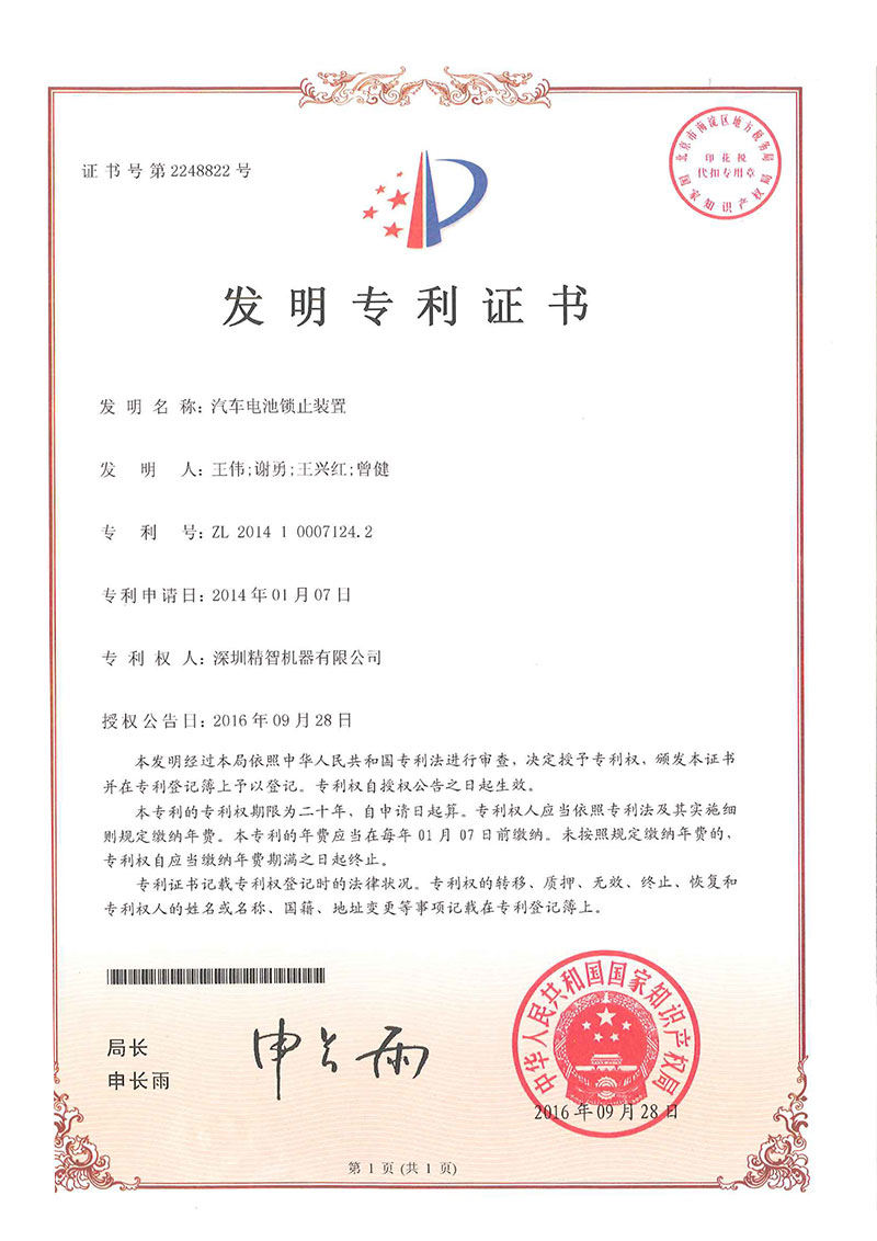 • 電池鎖止機(jī)構(gòu)-專(zhuān)利證書(shū)