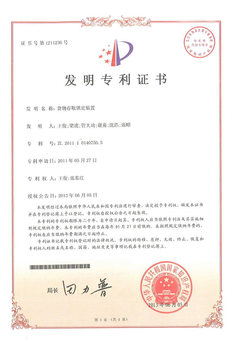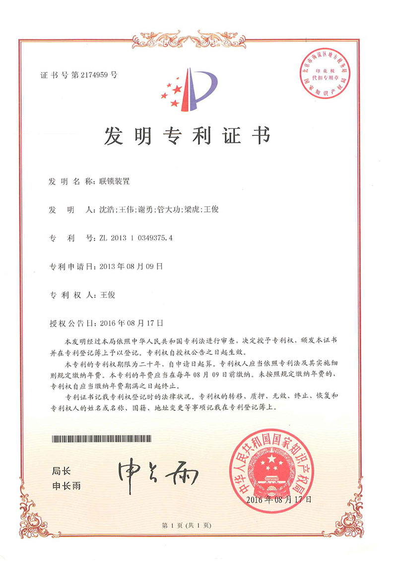 • 聯鎖裝置-專利證書
