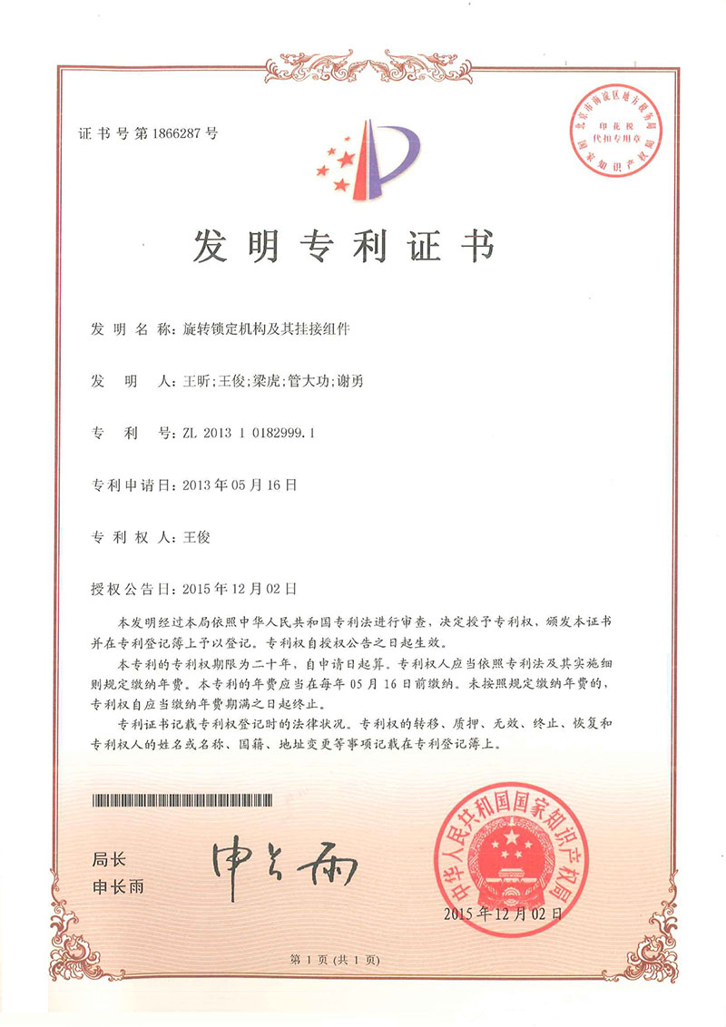 • 旋轉鎖定機構-專利證書