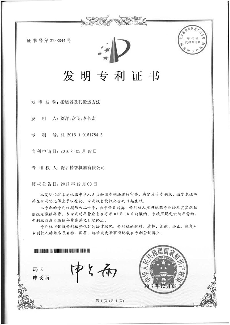 您現(xiàn)在的位置:首頁(yè) > 關(guān)于精智 > 專利證書(shū)